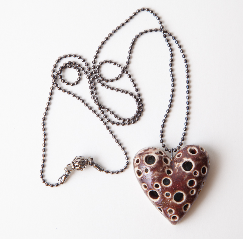 Kaelaehe - tumepunane aukudega süda